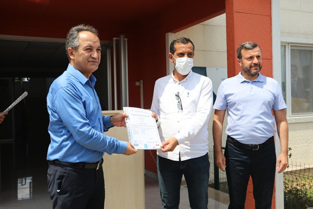 Belge almaya hak kazanan toplam 151 işçi için temizlik şantiyesinde tören düzenlendi. İşçiler belgelerini Yüreğir Belediye Başkanı Fatih Mehmet Kocaispir ve AKAMDER Başkanı Mustafa Karslıoğlu’nun elinden aldı.