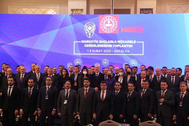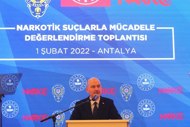 Antalya’da düzenlenen Narkotik Suçlarla Mücadele Değerlendirme Toplantısına katılan İçişleri Bakanı Süleyman Soylu, “Uyuşturucu ile mücadelede en önemli temel başarı hem yakalama oranının ciddi şekilde yükseltilmesi ama ülkenin içine sevk edilmeden sınır illerinde bloklanmasıdır. 2021 yılında toplam 283 bin şüpheliye gözaltı işlemi yaptık. 22 ton 234 kilogram eroin bu cumhuriyet tarihin rekorudur, 2 ton 841 kilogram kokain, bu da rekor, 5 ton 518 kilogram metamfetamin bu da cumhuriyet tarihinin rekorudur. Uyuşturucu operasyonlarını gündüz milletin gözü önünde yapalım, gece yapıyoruz uyuşturucu operasyonlarını çok anlatamıyoruz, gündüz basalım, alalım.” Dedi.