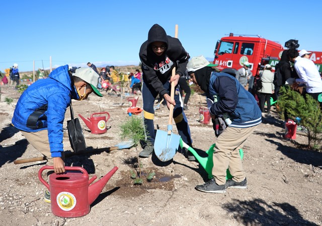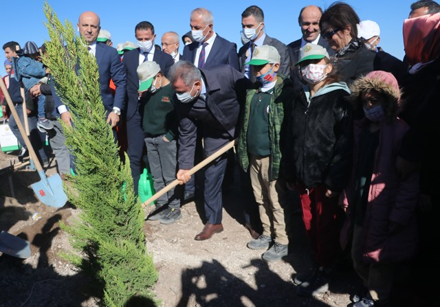 Konuşmaların ardından Vali Süleyman Elban, kent protokolü, vatandaşlar ve öğrenciler fidanları toprakla buluşturdu.