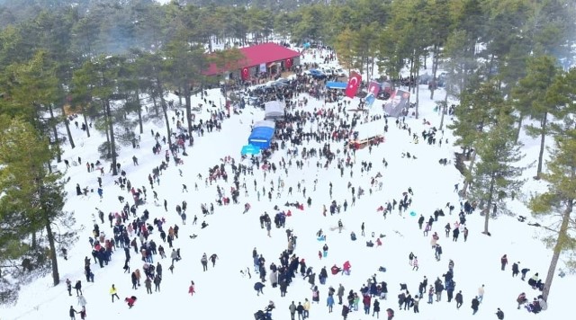 Öte yandan gün boyu süren etkinlikte vatandaşlar doyasıya karda eğlencenin ve doğanın keyfini çıkardı.