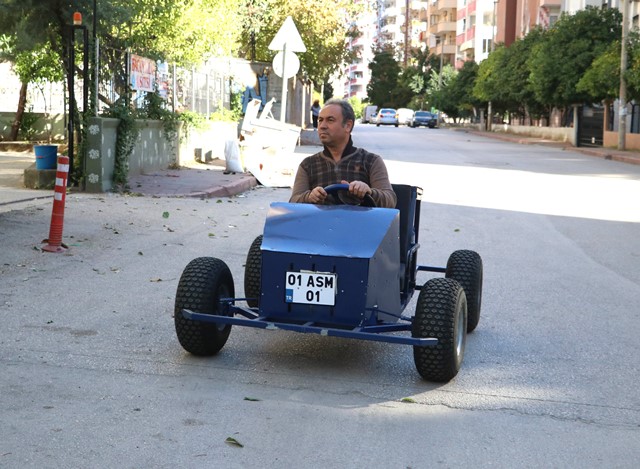 Merkez Çukurova ilçesi, Mahfessığmaz Mahallesi’nde apartman görevlisi Asım Gürgen (45), pandemi döneminde canı sıkıldığı için ‘Go kart’ arabası yapmaya karar verdi. İnternet üzerinden video izleyen Gürgen, kendi imkanlarıyla arabayı üretmeye başladı.