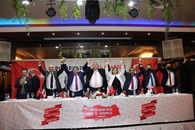 MHP Genel Merkezince organize edilen “Adım Adım 2023, İl İl Anadolu” programı Adana’da gerçekleştirildi. MHP Adana İl Başkanı Bünyamin Avcı, MYK üyeleriyle, milletvekilleriyle, Ülkü Ocaklarıyla, Türkiye Kamu-Sen, Türkav ve tüm kurumlarla tam bir uyum içinde çalıştıkları mesajını verirken, desteklerinden ötürü basına ayrıca teşekkür etti. Avcı “Adana harekete geçti, Adana şahlanıyor, Adana yeniden tarih yazmaya hazırlanıyor. Haziran 2023’de yapılacak seçimde Adana’da üç hilal sancağı dalgalanacak, Cumhur İttifakı taçlanacak.” dedi.