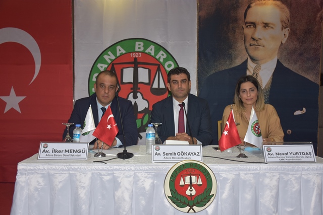 Adana Barosu tarafından mesleğin sorunlarına çözüm bulmak amacıyla düzenlenen “Avukatlık Mesleğindeki Sorunlar Forumu-1” konulu toplantı gerçekleştirildi. Adana Baro Başkanı Av. Semih Gökayaz, “Mesleki dayanışma ile çözemeyeceğimiz sorun yoktur.” Dedi.