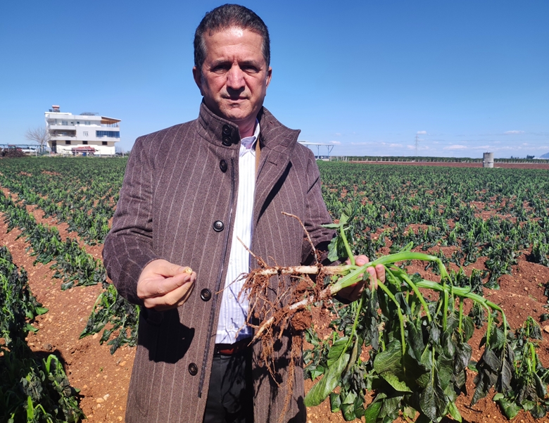 Yüreğir Ziraat Odası Başkanı Mehmet Akın Doğan, ilçeye bağlı Dedepınarı Mahallesi’nde zarar görmüş bir patates tarlasında açıklamalarda bulundu. Doğan, patatesin çok hassas bir sebze olduğunu belirterek, “Havanın eksi 2 dereceye düşmesiyle patates soğuğa dayanamadı. Patates yaprakları kurudu. Patates Mayıs ayının başında hasat edilecekti ancak kuruduğu için tekrardan filizlenmesi ve Haziran ayında hasat edilmesi bekleniyor” dedi.